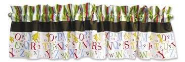 Dr. Seuss ABC Window Valance - Scatterprint Percale Bottom With Stripe Percale Top and Brown Percale Between; 82" X 15"